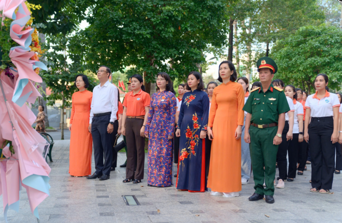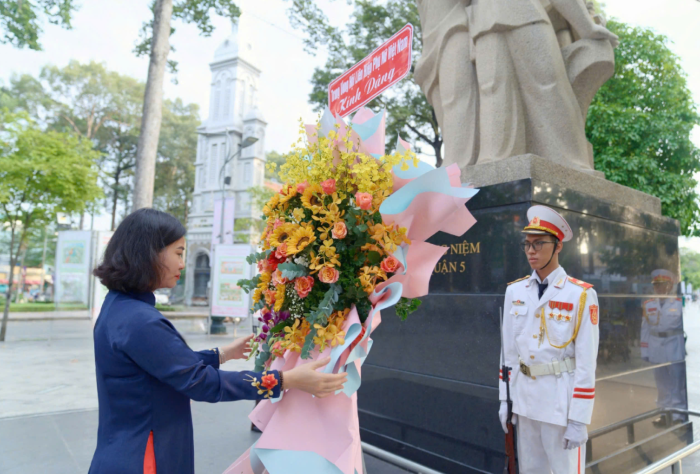 Sáng 16/11, trước Lễ Mít tinh, Ủy viên Trung ương Đảng, Chủ tịch Hội LHPN Việt Nam Nguyễn Thị Tuyến và các đại biểu đã dâng hoa tại Tượng đài tưởng niệm Dân quân (Quận 5, TPHCM).