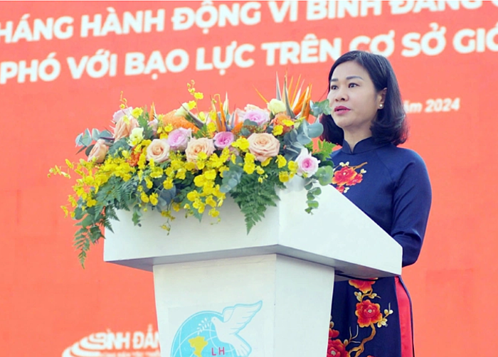 Phát biểu tại chương trình, bà Nguyễn Thị Tuyến, Ủy viên Ban Chấp hành TƯ Đảng, Chủ tịch Hội LHPN Việt Nam, cho biết: “Tháng hành động vì bình đẳng giới và phòng ngừa, ứng phó với bạo lực trên cơ sở giới năm nay, các cấp Hội đều có kế hoạch hưởng ứng bằng nhiều hành động cụ thể, từ việc tổ chức các chiến dịch truyền thông trên diện rộng, đến chăm lo, hỗ trợ phụ nữ; đẩy mạnh các hoạt động phòng ngừa, phát hiện, ngăn chặn và xử lý kịp thời các vụ việc bạo lực, xâm hại phụ nữ và trẻ em; vận động nguồn lực hỗ trợ nạn nhân bị bạo lực, xâm hại… Thông qua các hoạt động, chúng tôi mong muốn chuyển tải các thông điệp và hành động về bình đẳng giới và phòng, chống bạo lực trên cơ sở giới đến mọi tầng lớp trong xã hội”.