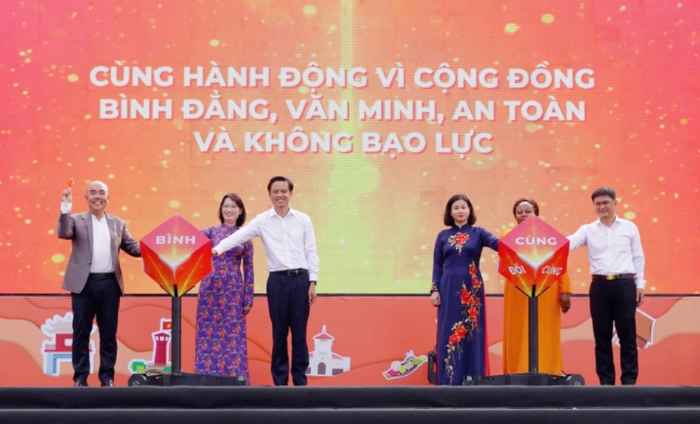 Đông đảo người dân TPHCM tham dự Mít tinh hưởng ứng Tháng hành động vì bình đẳng giới và phòng ngừa, ứng phó với bạo lực trên cơ sở giới năm 2024 với chủ đề “Cùng chung tay, Cùng thay đổi”.
