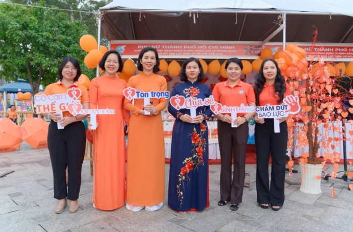 Trong khuôn khổ Lễ Mít tinh, các đại biểu đã tham quan các gian hàng triển lãm trưng bày, giới thiệu những mô hình, kết quả hoạt động và sản phẩm truyền thông về bình đẳng giới và phòng ngừa, ứng phó bạo lực trên cơ sở giới của một số Hội LHPN một số tỉnh, thành khu vực Nam bộ. Các đại biểu còn tham gia trải nghiệm vẽ tranh, xâu hạt, gấp giấy với tông màu cam để cùng nhau truyền đi thông điệp về bình đẳng giới.