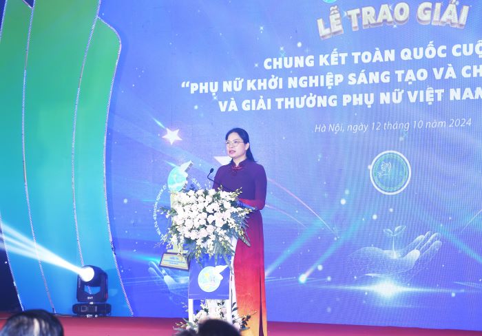 Tại chương trình, Chủ tịch Hà Thị Nga đã gửi lời chúc mừng 40 dự án có mặt tại vòng Chung kết toàn quốc. Đây là những dự án xuất sắc đã vượt qua vòng loại chấm điểm khoa học, công tâm của Hội đồng Giám khảo là những chuyên gia hỗ trợ khởi nghiệp quốc gia giàu kinh nghiệm, chuyên môn sâu trên nhiều lĩnh vực. Chủ tịch mong rằng các chị sẽ tiếp tục phát huy tài năng và sức sáng tạo để không ngừng nâng cao chất lượng sản phẩm đáp ứng xu thế tiêu dùng xanh của khách hàng, đóng góp vào tiến trình chuyển đổi xanh của nền kinh tế đất nước.