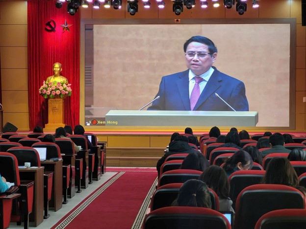 Các đại biểu dự Hội nghị cũng nghe Thủ tướng Chính phủ Phạm Minh Chính quán triệt nội dung, tinh thần Chương trình hành động của Chính phủ thực hiện Nghị quyết số 57-NQ/TW; Chủ tịch Quốc hội Trần Thanh Mẫn trình bày chủ trương, giải pháp về thể chế pháp luật về đột phá phát triển khoa học, công nghệ, đổi mới sáng tạo và chuyển đổi số quốc gia.