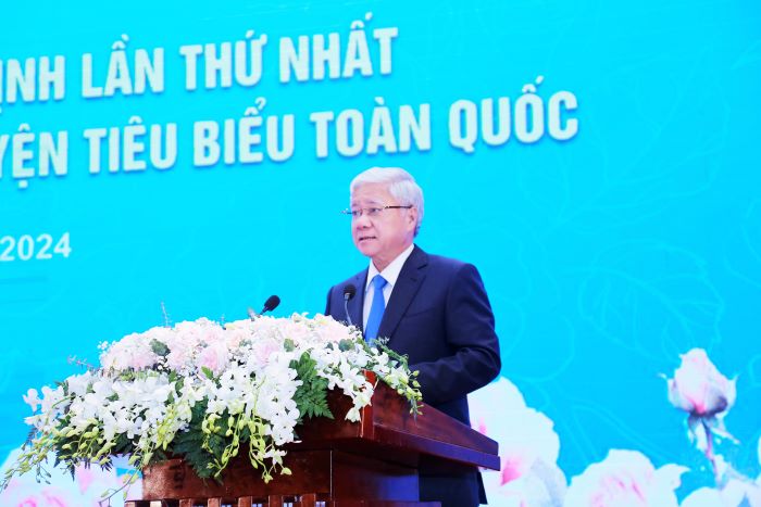 Đồng chí Đỗ Văn Chiến, Ủy viên Bộ Chính trị, Bí thư Trung ương Đảng, Chủ tịch Ủy ban Trung ương Mặt trận Tổ quốc Việt Nam; Ủy viên BCH TW Đảng, Chủ tịch Hội LHPN Việt Nam Hà Thị Nga cùng các đại biểu tại chương trình