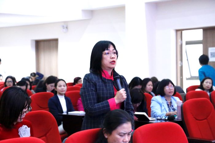 Bà Dương Thị Ngọc Linh, Giám đốc Trung tâm Phụ nữ và Phát triển phát biểu ý kiến tại Hội nghị