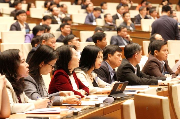 Chủ tịch Nguyễn Thị Tuyến và các Phó Chủ tịch tham dự trực tiếp tại Hội trường Diên Hồng, Nhà Quốc hội