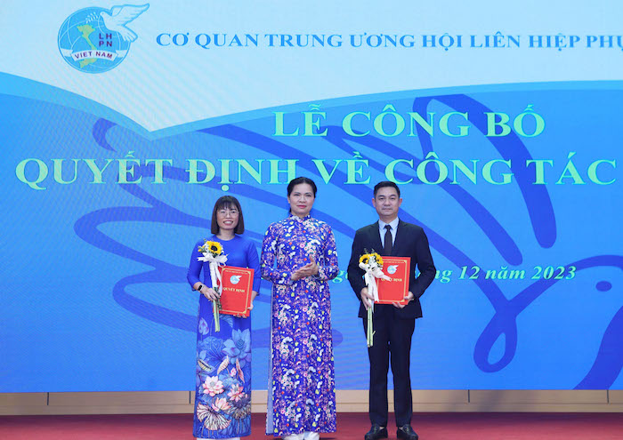 Ủy viên BCH Trung ương Đảng, Chủ tịch Hội LHPN Việt Nam Hà Thị Nga trao quyết định bổ nhiệm cho bà Nguyễn Hoàng Thị Ánh và ông Nguyễn Đình LaiCác quyết định bổ nhiệm gồm: